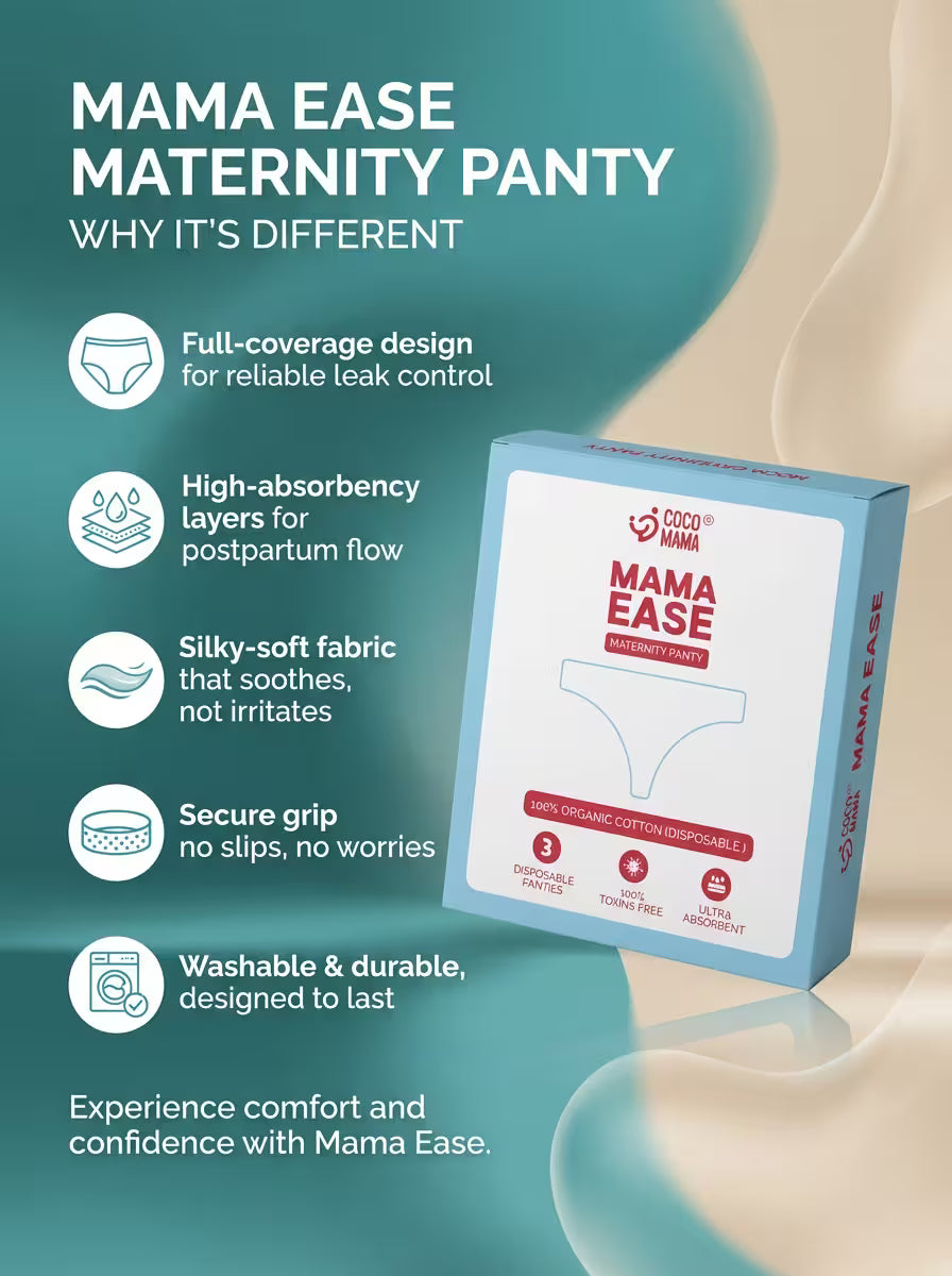 Coco Mama Maternity Panties provide up to 12 hours of supe-rior leak-proof protection, specially designed for postpartum flow and heavy discharge With 360° Anti-Leakage Technolo-gy and a super absorbent core, they ensure you stay dry fresh, and worry-free during recovery. Made from soft. breathable fabric, these panties offer a gentle, secure fit that adapts to your body giving you the confidence and comfort you deserve. No pads, no discomfort, just slip on like regular underwear and enjoy hassle-free protection.